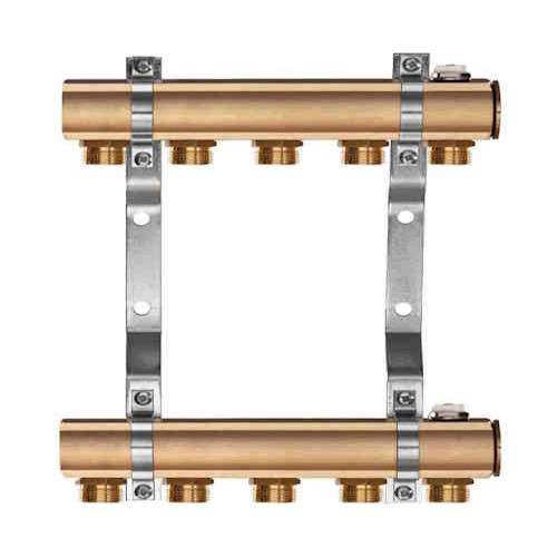 Mosadzný rozdeľovač/zberač so 4 okruhmi, priemer vstupov 1" F, priemer pripojenia 3/4" eurokonus.