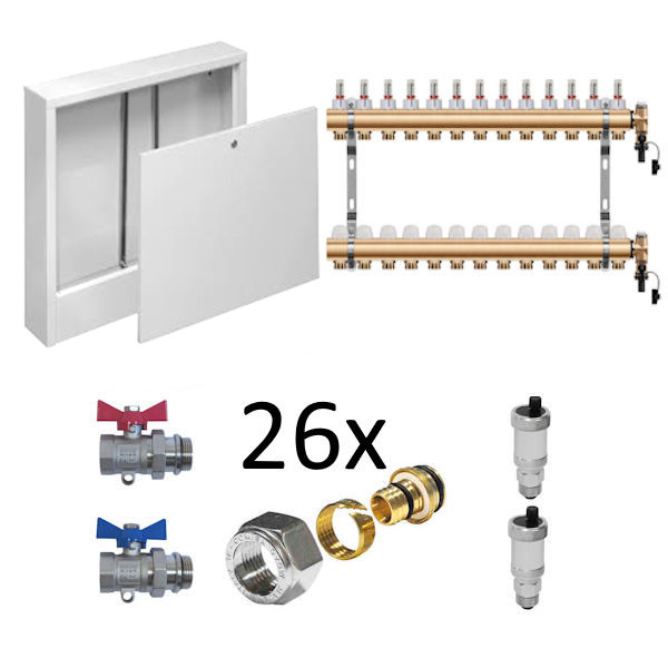 - Set pre 13 okruhov skrinka nadomietková guľové ventily priame 1", pre 16mm rúrku